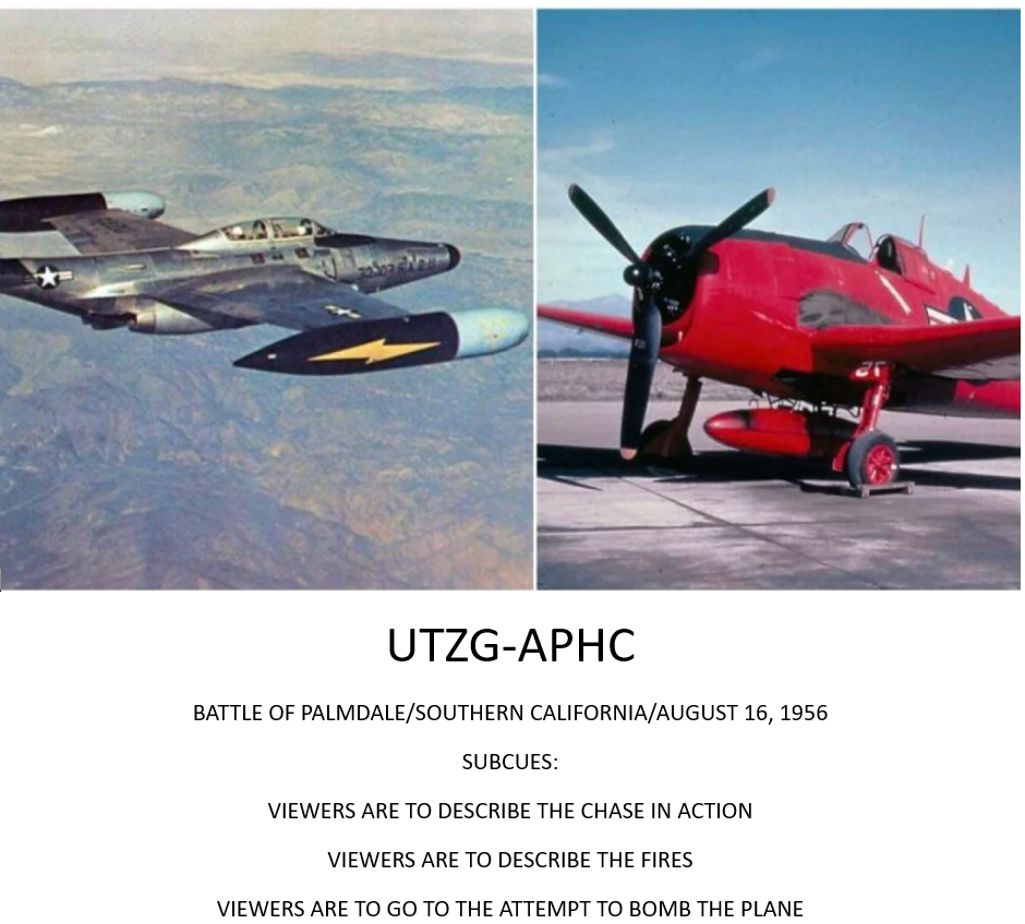 The title of the article that was sent to me: The Battle of Palmdale: That Time the Air Force Accidentally Bombed Southern California. I’ve read and understood the target. It describes an event in which the navy sent an unmanned drone over the ocean of southern California. They were conducting an exercise in which the drone would be shot down with an air-to-air missile. The unmanned drone went rouge and was unable to be controlled. The navy called in the Airforce to shoot it down as it could crash into Los Angelos. The Airforce answered the call and had the planes try to intercept the unmanned drone. The Airforce’s aircraft was equipped with two pods of 52 unguided Mighty Mouse 2.75-inch rockets. There were 104 on a plane, the Airforce sent 2 planes that collectively had 208 rockets. The airplane automatic firing control systems failed. The two pilots had to fire manually. Instead of hitting the target, the rockets all fell across Southern California, leaving a 150- acre brush fire near Bouquet Canyon, a 350-acre fire in Soledad Canyon and 100 acres near Placerita Canyon. All 208 rockets missed the drone. Nobody died. Downtown Palmdale was bombed with rockets. The drone eventually crashed after running out of fuel.