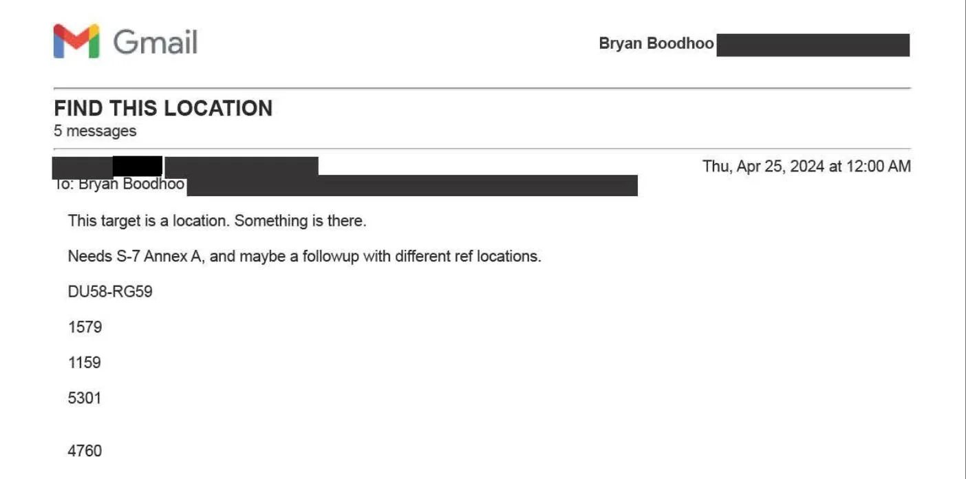 4-25-2024: Email received from our tasker with a target ID and 4 Encrypted Reference Locations. The Target ID and Encrypted Reference Locations would get published to our Enigma Working Group. An upload link will be provided for viewers to upload their sessions, no other information is passed.