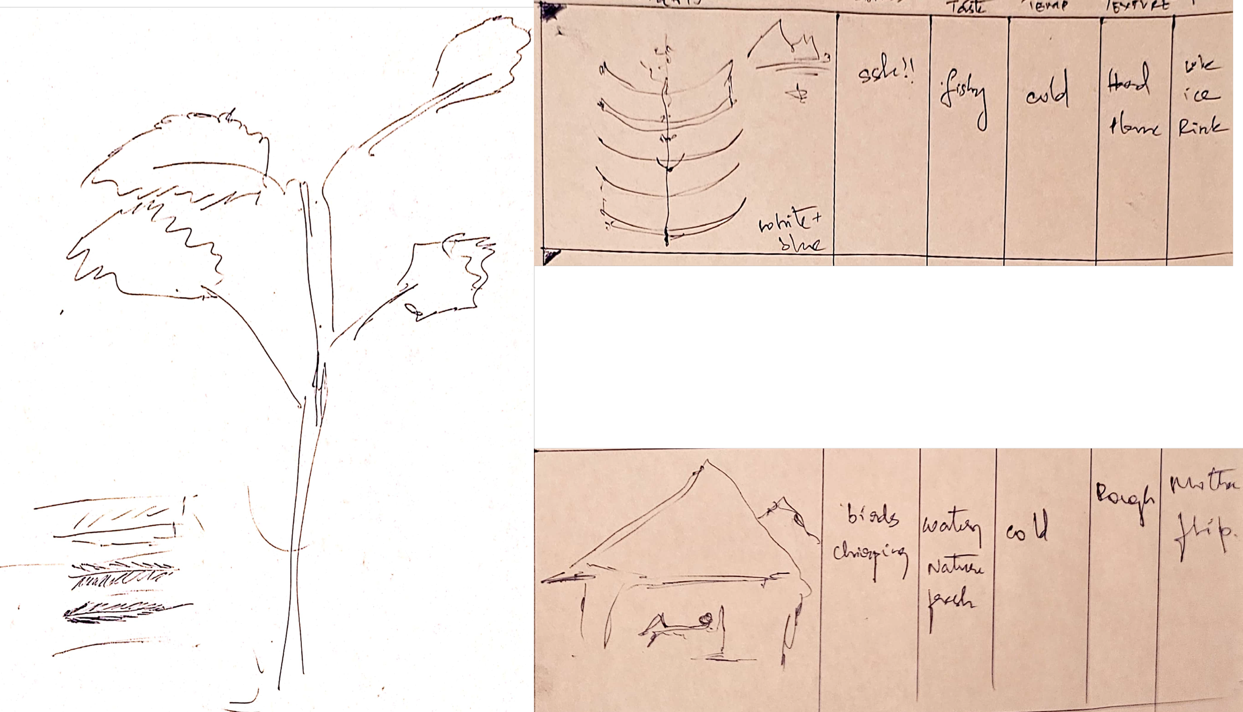 LEFT- Kavan sketches a tree, the landmark associated with the buried treasure. Kavan’s smell of “fishy” is prevalent at this location.